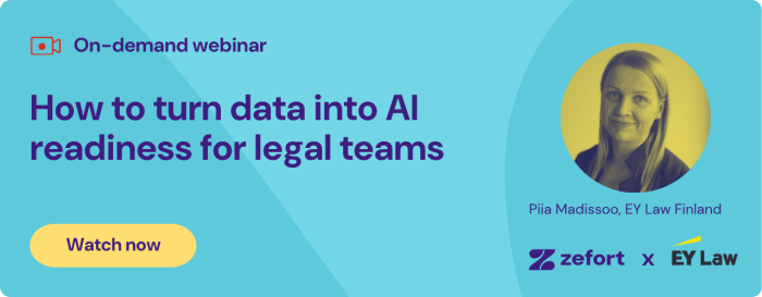 AI is everywhere, but many legal teams still struggle with where to start. In this webinar recap, we share Pia Madissoo’s (EY Law Finland) insights on how to transform everyday legal data and processes into genuine AI readiness.
